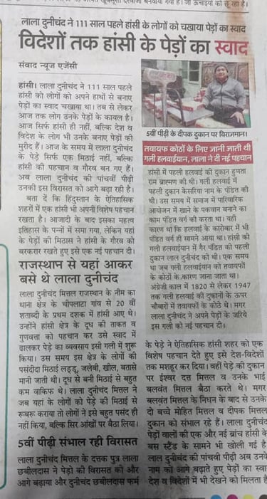 Since 1880, we craft exquisite pedas, preserving tradition and flavor in every bite. Experience the legacy of Lala Duni Chand Chhabil Dass, where history meets craftsmanship in Hansi, Haryana.